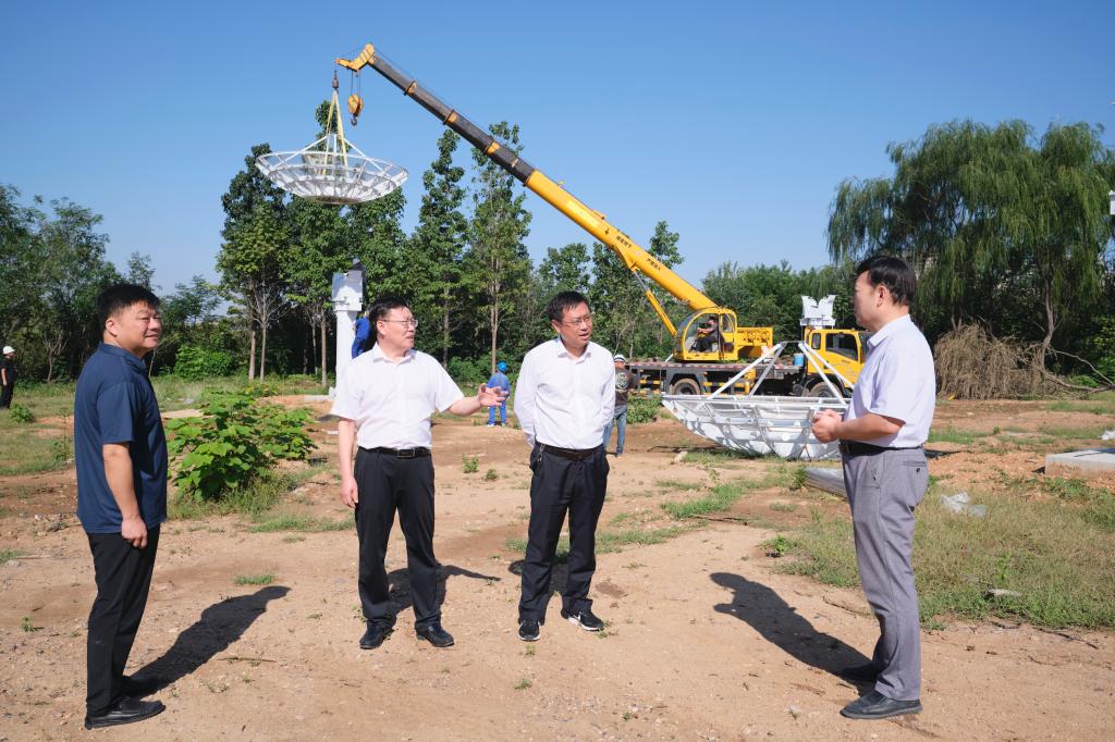 9月22日上午,党委书记林松柏,党委副书记、校长郑秀文到学校“齐鲁探天”分米波阵列项目施工现场进行踏勘调研。党委委员、党委组织部部长杨磊,党办、校办主任乔国华,物理与电子工程学院副院长刘萌陪同调研。