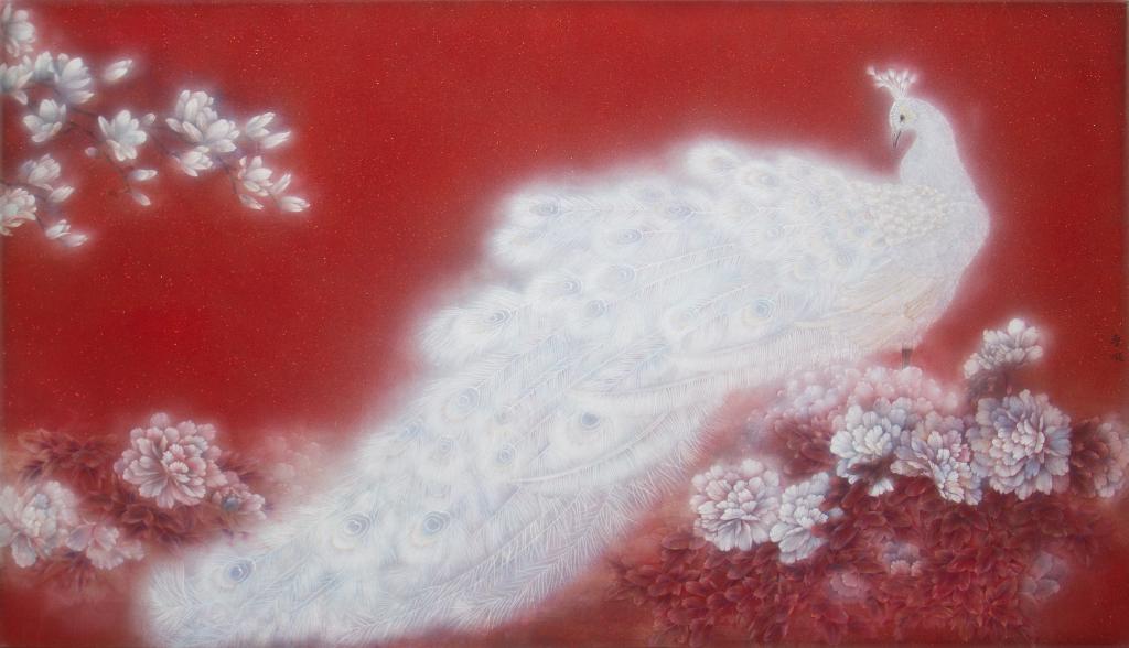 故着胭脂轻轻染,一泓澄明照人间。 曹暇生于艺术之家,自幼在花与画的熏陶灌溉里长大,将传统的工笔重彩与岩彩技法完美结合,形成了自己独特的艺术风格,此次展出围绕花、佛、境所创作的作品是近年来第一次公开展示。虽遇入冬后的第一次寒潮,展厅内却是春潮涌动。敦煌、岩彩孔雀、岩彩牡丹和工笔宫扇等系列作品交相辉映,相得益彰,在沉淀已久的传统中,演绎尘世原本被掩盖的美和本真。画境如禅境,发现并表现着一个个富贵天成的艺术形象,画作无言,亦如花开绽放,倾情呈现,极致表达。作品吸收了敦煌壁画的优秀因子,同时也借鉴了“印象派”施色丰富、亮丽、生动的优点,画面既表现出一种富丽堂皇、雍容华贵的气象,同时又洋溢着深邃而典雅的韵致,达到了艳而不俗的境界。既突出了表现对象的主体,又像敷上了一层薄纱予以一种灵动的神秘朦胧感,体现了古典美学的“含蓄”之美。