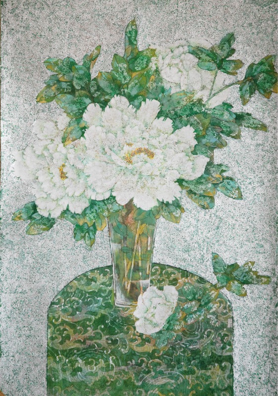 近年来曹暇在色彩的使用上倾心于新材料的研究与应用,岩彩是一种具有晶体颗粒的颜色,不同粗细的颗粒,呈现出异常丰富的色彩表现效果。她通过反复的探索及实践,对色彩有着独到的驾驭能力,再凭籍其深厚的家学及对古典美学的修为,用岩彩创作了一批优秀作品,此次展出的即为其中部分作品。