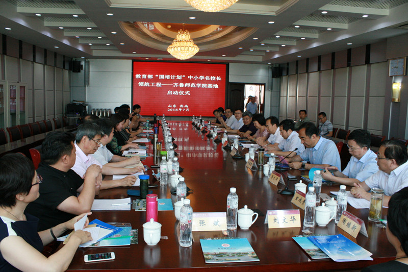 7月1日,教育部“国培计划”中小学名校长领航工程必赢76net线路官网基地举行启动仪式。教育部全国教师培训专家工作组秘书长黄贵珍,国家教育行政学院副院长于京天,教育部中小学校长和幼儿园园长国家级培训项目管理办公室副主任于维涛,山东省教育厅教师工作处处长刘宝君,校党委副书记、校长林松柏,副校长刘德增出席启动仪式,校基地理论导师、实践导师以及来自北京、海南、湖北、安徽、宁夏、福建、辽宁的七位名领航班校长等参加了启动仪式。启动仪式由基地负责人、副校长、导师组组长刘德增主持。