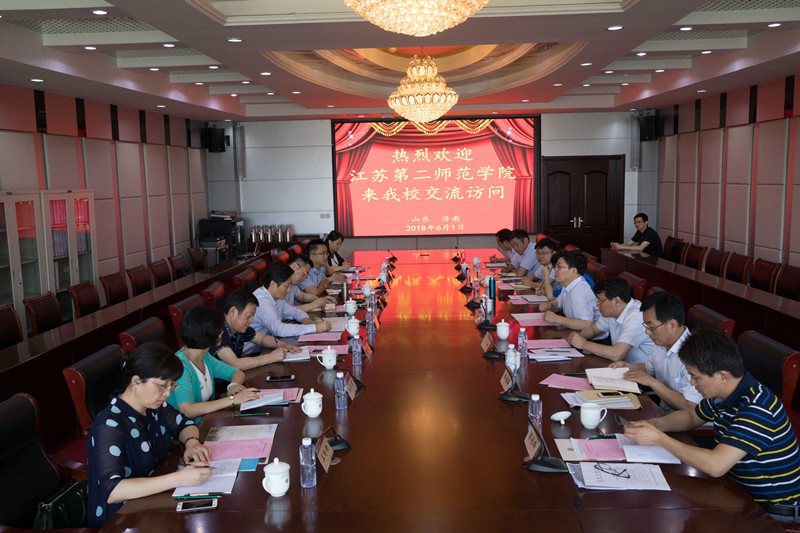 6月1日,江苏第二师范学院校长王建、副校长祝兴成一行8人来必赢官网调研交流。校长林松柏、副校长王海会见了访问团一行。教务处、科研处、人事处、学生工作部(处)、后勤处、教师教育学院负责同志参加了座谈。