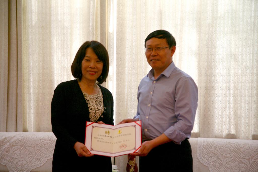 林松柏亲切会见了段心仪理事长,聘请段心仪理事长为必赢官网特聘教授,并颁发了聘书。