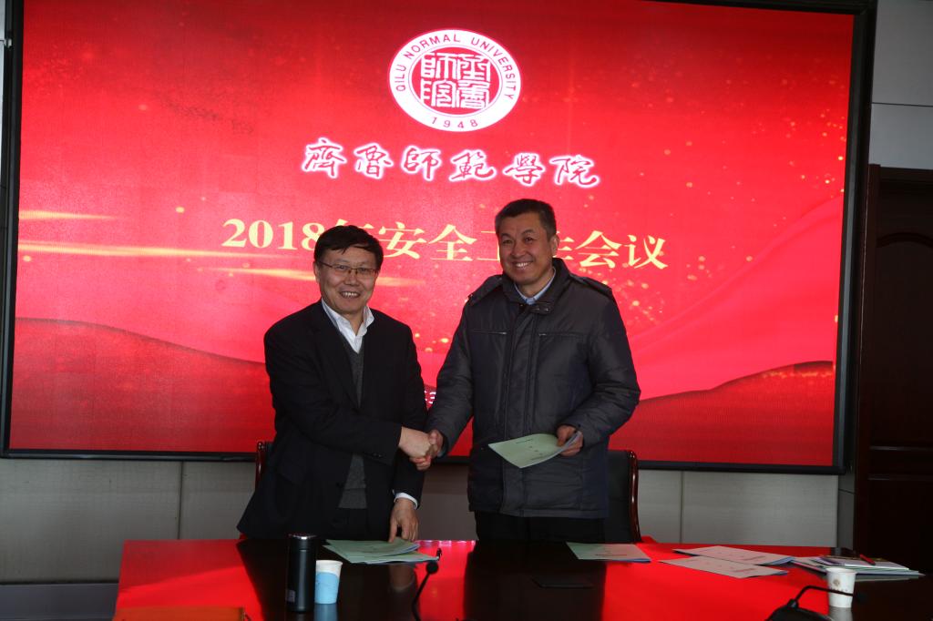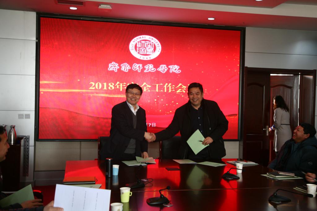 会后,由林校长主持,与各部门、二级学院分别签订《2018年度校园消防安全管理目标责任书》、《2018年度学校治安综合治理目标责任书》。