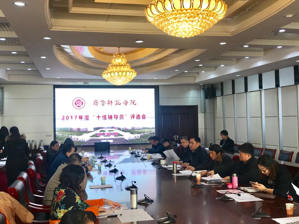 12月28日上午,必赢官网在章丘校区图书馆四楼会议室召开2017年度“十佳辅导员”评选推荐会,党委副书记张殿臣出席会议并讲话,党委组织部、宣传部、人事处、学生工作处、团委、招生与就业指导处以及各学院党总支负责人担任评委。