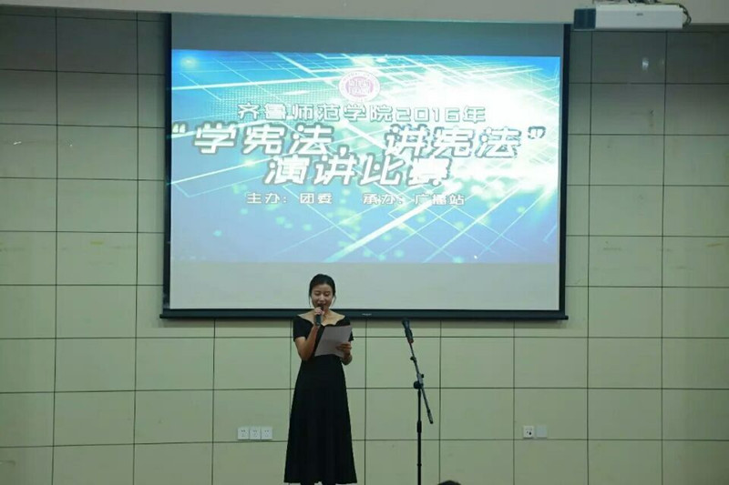 为贯彻落实国家“七五普法”规划和《青少年法治教育大纲》要求,引导必赢官网学生形成“学法、知法、守法、护法”的意识。11月3日,由校团委主办、校广播站承办的“学宪法,讲宪法”主题演讲比赛在必赢官网章丘校区学术报告厅举行。全校14个学院的28名选手参加了本次比赛。