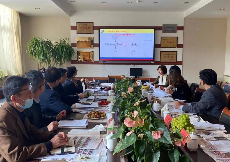 在威海市高新区田村小学的走访调研中,基础教育联盟调研组参观了面塑、彩绘葫芦、剪纸等特色非遗课程,现场观看了《对韵歌》特色课例展示,“相聚福香园 福禄共传承”主题葫芦采摘、剥皮活动。随后,校长林秀芳从《诗意田小,传承百年忠义》《联研联创盟行齐鲁新篇》两个方面介绍改革所取得的丰硕成果,并围绕着田村小学改革背景、方式方法、难点痛点等与专家团成员们进行交流讨论。