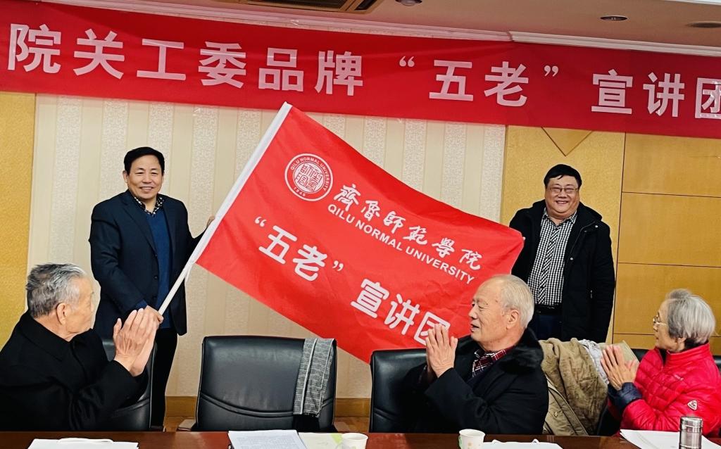 成立仪式上,刘宝君为“五老”宣讲团授旗,并为“五老”宣讲团顾问和首批宣讲团成员颁发了聘书。林成策教授代表宣讲团接受授旗,张荣年、王新礼、周桂珍、仝素勤、牟树勋等5位老领导担任宣讲团顾问,首批宣讲团成员由李甲奎、宋继和、林成策、李雁、张洪芹、苗军芙等6位专家教授组成。离退休工作处党总支书记马海涛宣读了《关于成立必赢76net线路官网“五老”宣讲团的决定》,离退休工作处副处长郁志营介绍了“五老”宣讲团成立情况和今后工作打算。