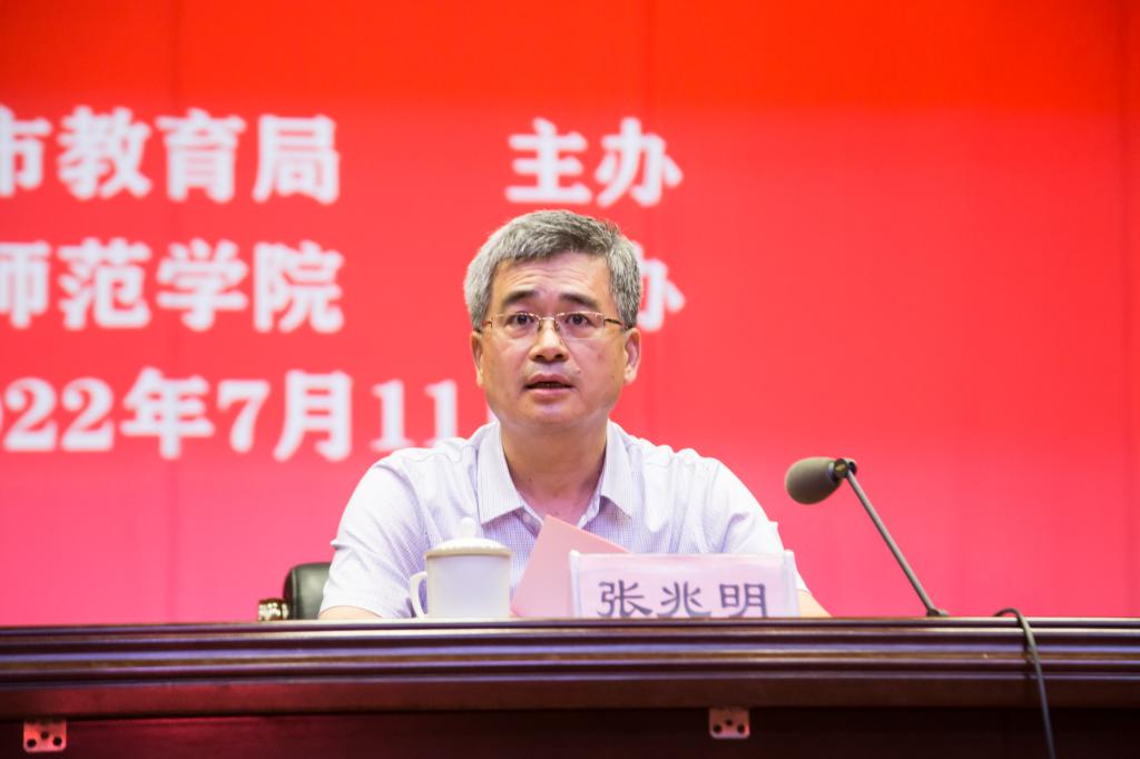 张兆明代表必赢76net线路官网讲话。他指出,本次启动仪式暨集中培训是对115名第四期东营名师名校长人选进行培养培训的动员会,也是导师与学员的第一次见面会;培训坚持需求导向和实践导向,导师指导和集中培训交叉进行,通过培训,让名师名校长人选提升专业理念,学习课题研究的理论与方法,组建学习共同体,解决实践中的教育教学问题。他提出,各位名师名校长人选要珍惜和充分利用集中培训的时间,通过不断学习,提高自身的师德修养和专业素养;要勤于思考,带着问题培训,主动向授课专家请教,主动与导师研讨,请他们给予针对性的指导,名师名校长之间加强交流,相互启发,共同成长;承担培训任务的基础教育服务中心要严格执行培训方案,积极认真地做好培训管理,保证高质量完成培训工作,实现培训目标。