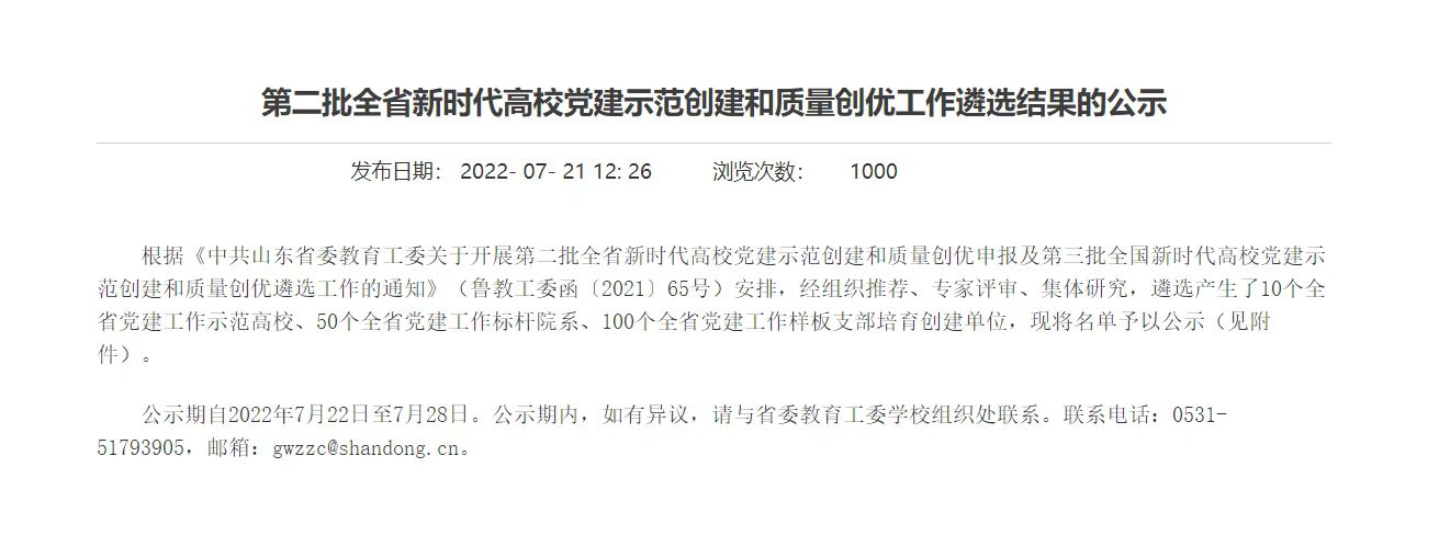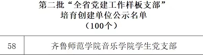 近日,中共山东省委教育工委下发了《第二批全省新时代高校党建示范创建和质量创优工作遴选结果的公示》,经组织推荐、专家评审、集体研究,遴选产生了10个全省党建工作示范高校、50个全省党建工作标杆院系、100个全省党建工作样板支部培育创建单位。必赢官网音乐学院学生党支部获评“第二批全省党建工作样板党支部”。