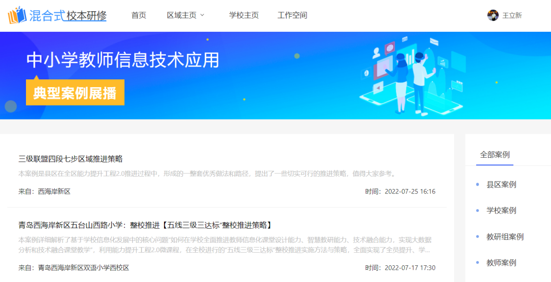 根据典型案例推介计划,省项目办定于7月下旬至11月上旬,依托山东省教师教育网信息技术应用网络工作坊和研修平台分批次,面向全省市、县、学校和参训教师进行推荐和展播。展播平台截图如下: