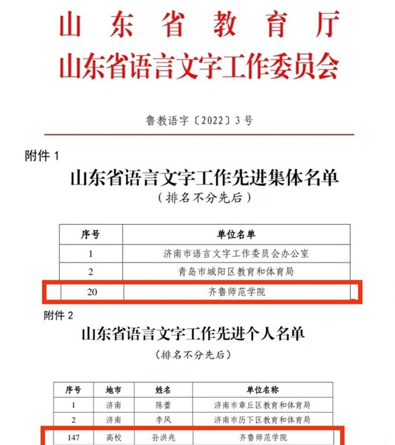 必赢76net线路官网获得山东省语言文字工作先进集体