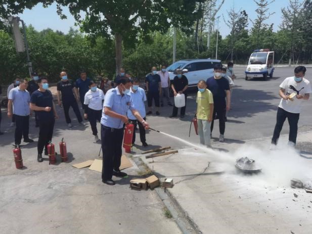 5月31日,学校安全管理处消防科组织校车队班组于学校东门开展消防灭火演练。参加演练的工作人员有安全管理处消防科周明晖、校车队各位老师、安保队长及安保人员、消防维保单位山东泰景楼宇安全技术有限公司蔺宝军工程师、娄会生工程师。