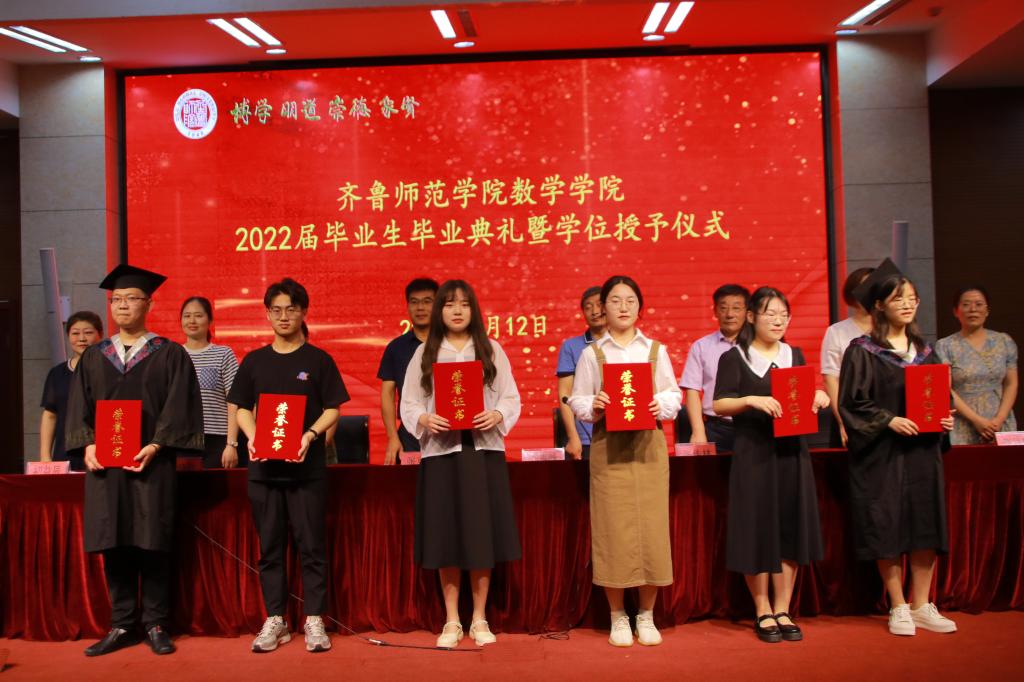 数学学院团总支书记张祥艳宣读省级优秀毕业生名单和校级优秀毕业生名单,数学学院学位评定分委员会成员为获奖学生颁奖。