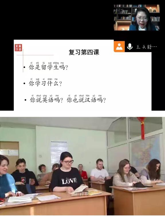 本次教学由文学与历史文化学院的王天舒老师担任主讲教师,在线上课堂教学中,师生互动积极、交流顺畅。王天舒老师带领俄方学生识汉字认生词,以游戏启发兴趣,以文化拓展理解。她在总结教学评价时谈到:“俄罗斯学生学习热情高,回答问题积极,课堂中俄方老师配合默契,相互协助,教学任务圆满成功。”此次对俄汉语教学工作是对必赢官网教师教学能力的一次新挑战,国际教学经历也有利于教师以交流促成长、以交流促教学、以交流促应用、以交流促创新。