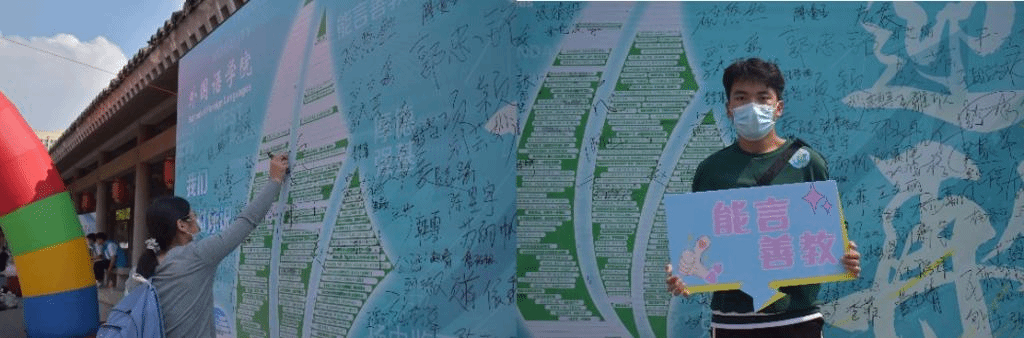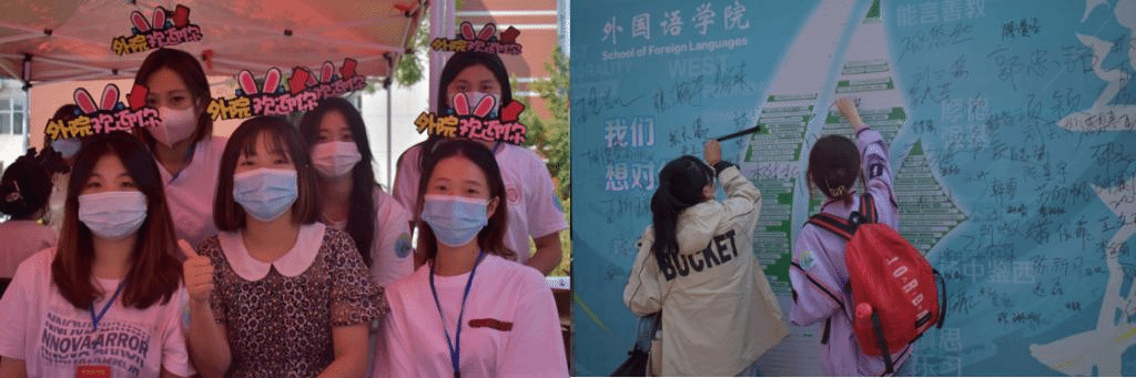 网络迎新、拓展渠道,筑牢思想引领阵地。为帮助新生尽快转变身份、了解学校和学院情况,在获取录取名单的第一时间,学院由专人主动与每一位录取学生取得联系,建立了新生QQ群和微信群。在群内,学院安排辅导员和高年级优秀学生入群为新生答疑解惑。与此同时,学院依托官方公众号“了不起的外国语”开辟了“新生修炼手册”专栏和官方抖音号的新生“show”专栏,从8月初起持续推送迎新专题,内容涵盖了校院介绍、师生风采、团学简介等。学院还于开开学前召开了全体新生线上班会和学生家长会,利用新媒体优势,发挥网络育人的主阵地、主平台、主渠道作用,做好家校联合工作,使新生将适应阶段前移,实现从高中生活到大学生活的无缝衔接和完美角色转换。