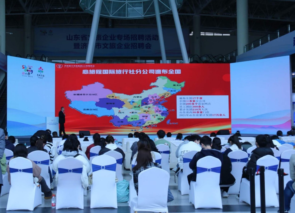 山东省文化和旅游厅联合山东省人力资源和社会保障厅、山东省教育厅、济南市政府举办的山东省文旅企业专场招聘会,于3月11日在舜耕国际会展中心进行。学生工作部副部长、就业指导中心主任万丽丽,地理与旅游学院辅导员徐媛媛带领地理与旅游学院60位旅游专业毕业生参加了此次招聘会。