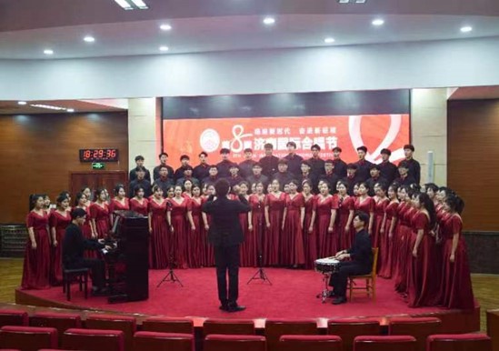 为保证此次音乐会的演出效果,师生积极准备、认真练习,以嘹亮的声音、优雅的形象,完美的呈现在济南国际合唱节音乐会的舞台上。伴着振奋人心的歌声,合唱团成员坚定自信,斗志昂扬,用奋斗在新时代舞台不断演绎精彩!