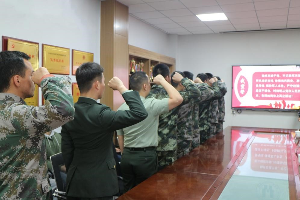 宣讲团负责人田文宗带领九位宣讲团成员右手握拳,严肃且坚定地面向国旗共同宣誓,誓词慷慨激昂、掷地有声。