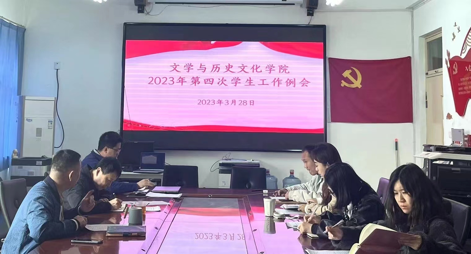 为进一步落实学校学生工作会议精神,推进文学与历史文化学院学生工作开展,3月28日,文学与历史文化学院召开学生工作例会,学院领导班子成员和全体辅导员参加会议,会议由党委副书记何睿主持。