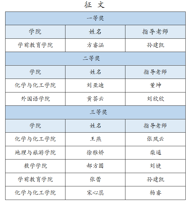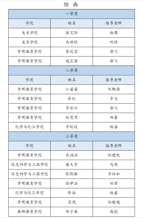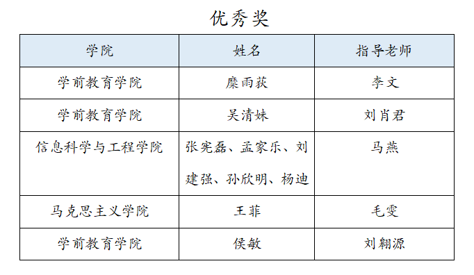 备注:获得一等奖的作品,指导教师获优秀指导教师奖。