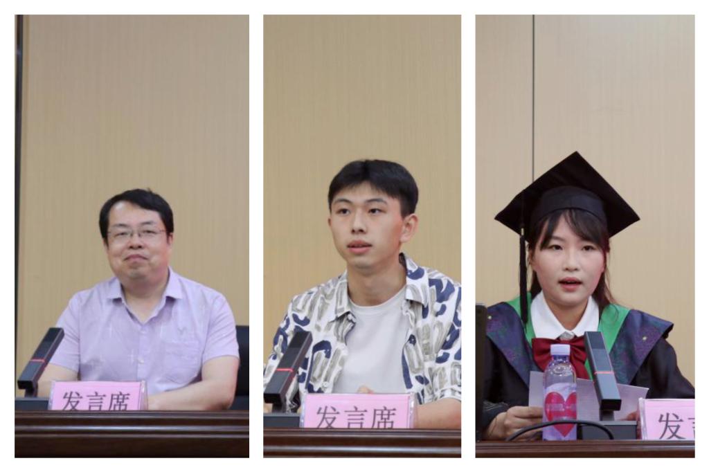 教师代表蔡云飞在发言中表示,希望同学们不论求学深造还是进入社会干事创业,都要树立终身学习的理念,保持不畏艰难、勇攀高峰的科学创新精神,用奋斗绘就新的辉煌。