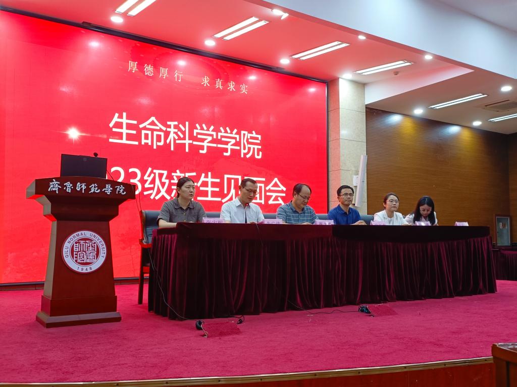 为帮助新生尽快熟悉校园环境,适应大学生活,9月9日晚,生命科学学院在章丘校区第一学术报告厅召开2023级新生见面会。学院党委书记张海龙、院长崔大勇、副院长高珊、团总支书记张宏熙、团总支副书记徐茜茜,全体辅导员及2023级全体新生参加会议。见面会由学院党委副书记朱广伟主持。
