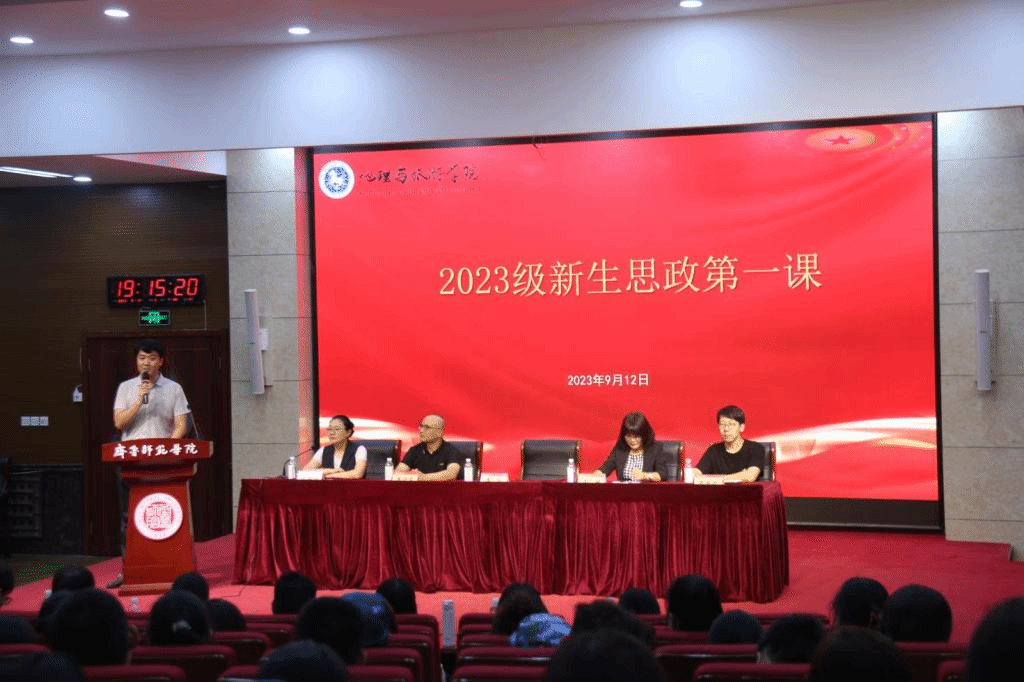 会议最后,秦拓为2023级新生讲授“思政第一课”。他以心理学的互动游戏为切入点,勉励同学们要相信自己,同时作为新时代的青年,更要相信我们的党和国家。他给同学们提出四点希望:一是希望大家树立远大理想抱负,把握时代机遇,把握学习机会,为祖国的富强、社会的发展、文明的进步、人民的幸福而努力读书,勤奋学习;二是希望同学们能够正确分析和认识自己,快速适应大学生活,明确未来发展方向,持之以恒,踏实走好成长成才之路;三是希望同学们要注意理论与实践相结合,课堂学习与课外学习相结合,被动接受性学习与主动研究性学习相结合,把自己发展成为符合社会需要的优秀人才;四是希望同学们在大学期间要加强思想道德修养和人文素质修养,智商、情商、逆商并重,做学识渊博、品德高尚的人。同时他从学会尊重、包容、感恩、担当、成长、学习、明辨、团结八个方面与同学们分享,帮助大家更好成长成熟。