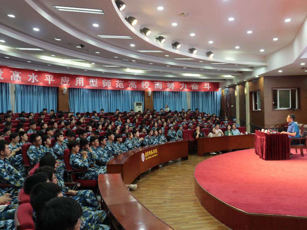 9月19日晚,数学学院在章丘校区第一学术报告厅开展“励志笃行,为心赋能”——2023级新生入学教育活动,2023年度“齐鲁最美教师”、学校马克思主义学院教授刘振光受邀为全体新生作了题为《新时代大学生应当具备的素质、能力及其提升》的思想价值引领专题讲座。讲座由数学学院党委书记郑延亮主持。