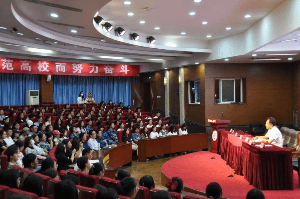 郑海斌为2023级新生讲授“思政第一课”。他指出,新时代的学生们要做到胸怀格局、心有敬畏、脚踏实地、崇德尚能。他强调,同学们应正确认识新时代发展形势,深刻认识教育强国建设任务,正确定位大学发展阶段要求,牢记“明德仁爱,行端表正”的院训,努力提高身的综合素质和专业素养。他指出,应在自律自省中不断提升自我,收获知识增长才干,收获友谊获得认可,努力为学前教育事业优质发展打牢基础、贡献力量。