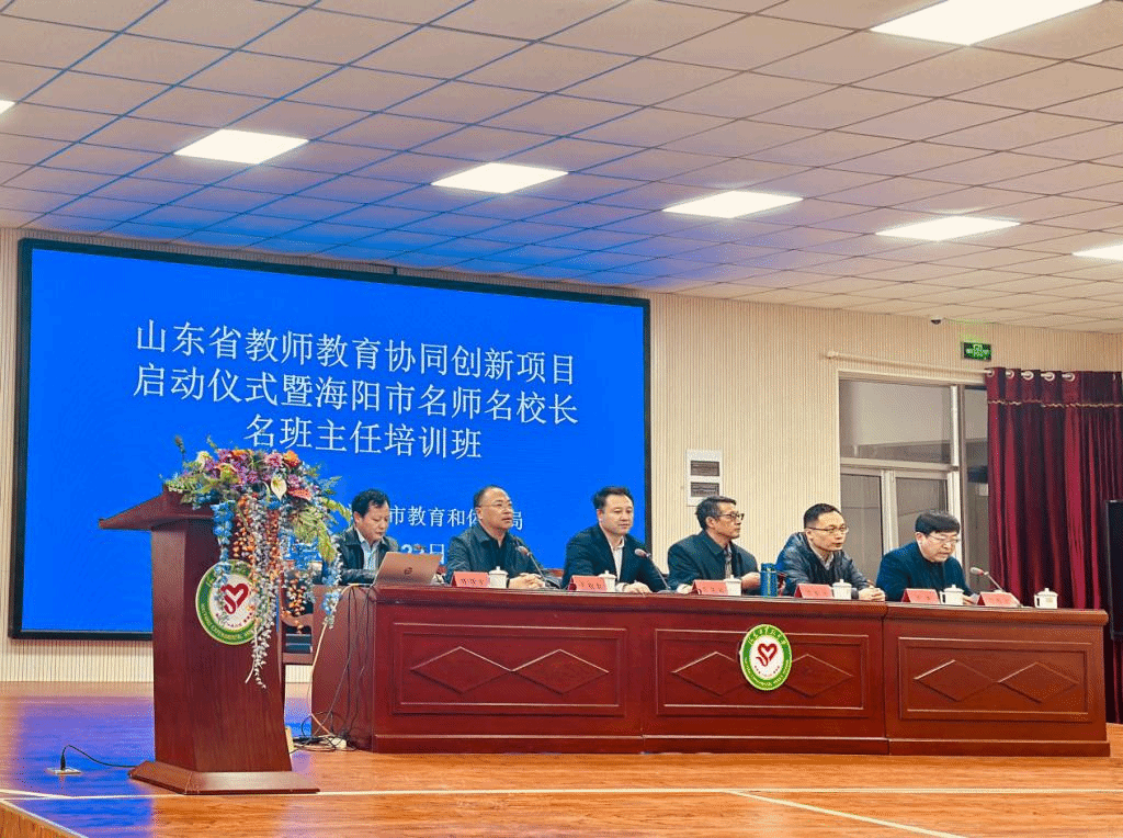 11月22日,学前教育学院与海阳市教体局举办山东省教师教育协同创新项目启动仪式暨海阳市“三名”工程人选培训班。海阳市委教育工委常务副书记、市教体局党组书记、局长于晓鹏,必赢76net线路官网学前教育学院党委书记郑海斌、副院长孙岩、党委副书记孙建凯,马克思主义学院教授刘振光出席启动仪式。仪式由海阳市教体局副局长刁伟波主持。