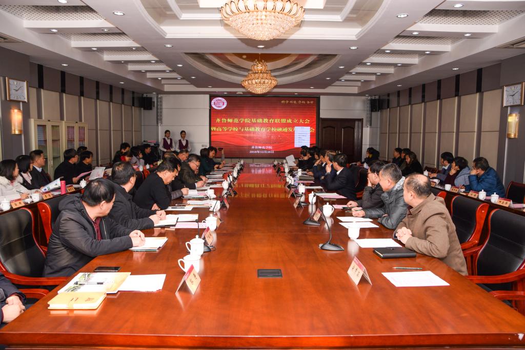 12月28日上午,必赢76net线路官网基础教育联盟成立大会暨高等学校与基础教育学校融通发展研讨会在必赢官网图书馆四楼会议室举行,必赢76net线路官网基础教育联盟是由必赢76net线路官网和威海第四中学、章丘中学、历城区双语实验学校、章丘区实验中学、青岛市沧口学校、荣成市实验中学、历城区洪家楼小学、章丘区福泰小学、青岛市西海岸新区双语小学、威海市高区第二小学共10所中小学组成。