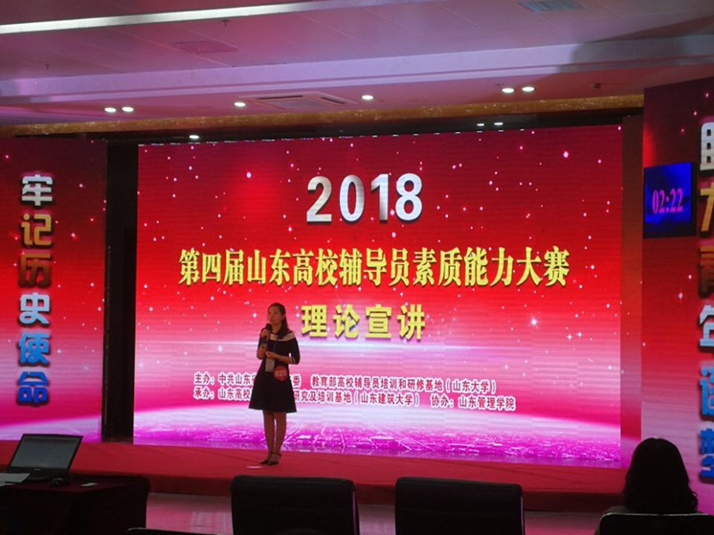 5月11-14日,由中共山东省委教育工委、教育部高校辅导员培训和研修基地(山东大学)主办,山东高校辅导员工作研究及培训基地(山东建筑大学)承办的第四届山东高校辅导员素质能力大赛暨专题培训在山东管理学院举行,共有来自全省高校131名辅导员参加比赛。必赢官网辅导员刘若杨精心备战、表现优异,荣获第四届山东高校辅导员素质能力大赛二等奖。