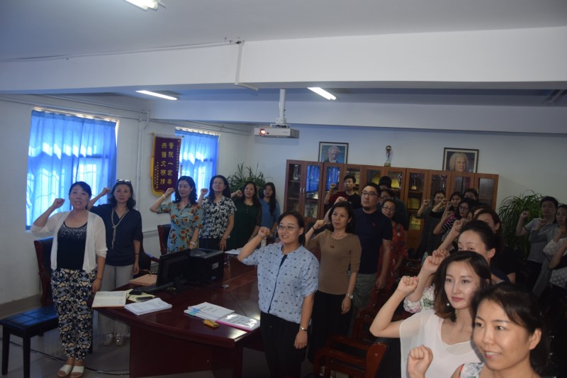 在全国第33个教师节即将来临之际,9月7日下午,音乐学院在会议室举行庆祝教师节教师宣誓仪式,音乐学院院长窦曼莉、党总支书记万梅红、副院长常爱玲参加仪式。
