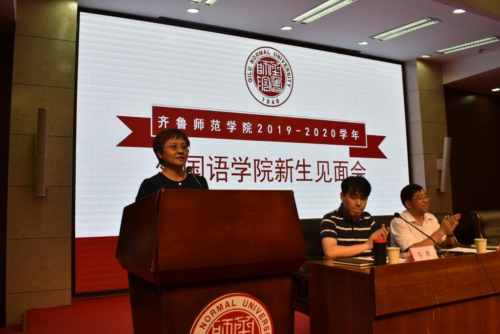 副院长宋秀葵代表学院对新生的到来表示热烈欢迎。她向新生介绍了学校和外国语学院的整体招生情况、考研情况、专升本情况以及毕业生就业等情况,向同学们展示了学校及外国语学院良好的发展前景,鼓励大家对学校和学院树立信心,对个人未来发展树立信心,并在“制定目标”和“管理时间”等方面向新生提出具体要求。