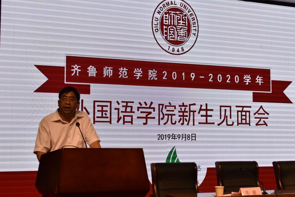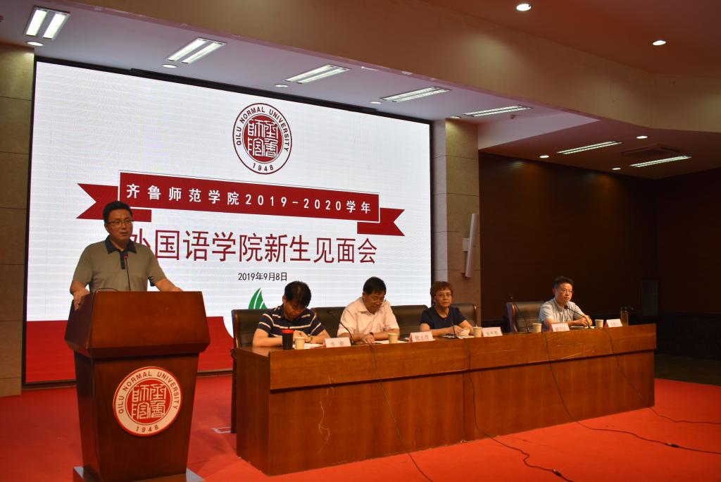 9月8日下午,外国语学院在章丘校区学术报告厅举行新生见面会。外国语学院副院长宋秀葵、党总支副书记郁志营、副院长臧学运、办公室主任栾毅之出席会议。团总支副书记孙海燕、辅导员倪冉、新生各班班主任以及全体新生参加了见面会。会议由团总支书记牛荦主持。