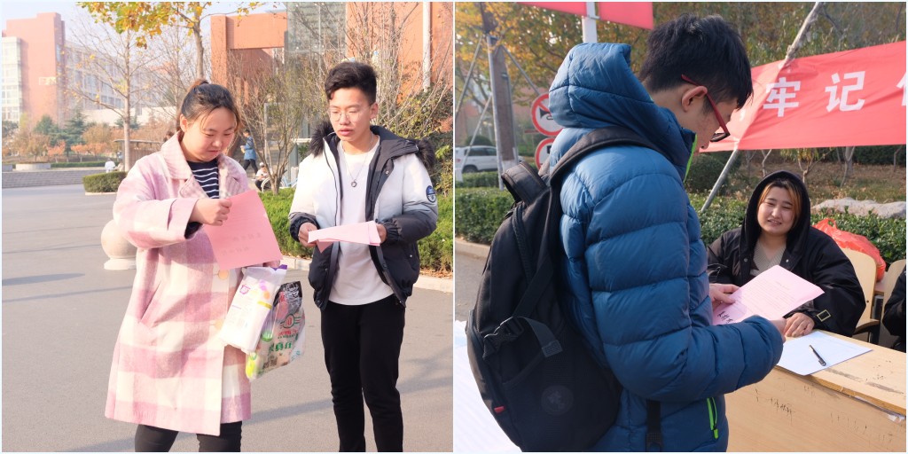 文学院学生党支部成员在募集现场服务
