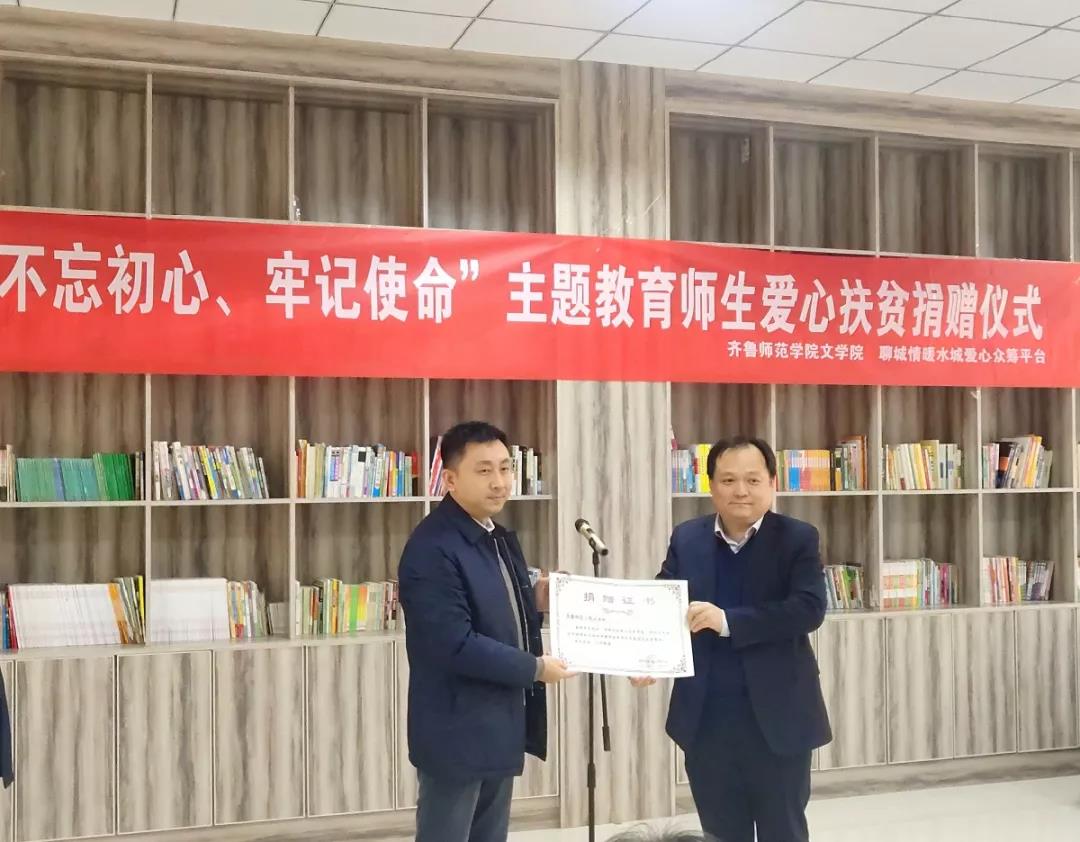 文学院“不忘初心、牢记使命”主题教育师生爱心扶贫募捐物资捐赠仪式在聊城市东昌府区举行