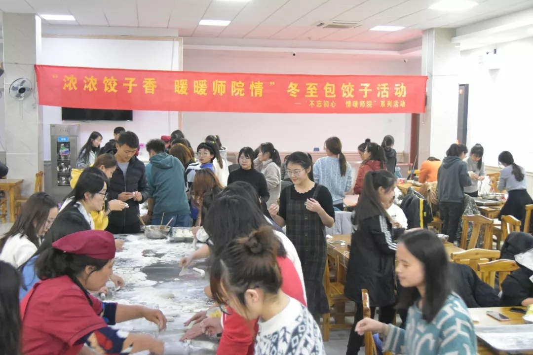 冬至是中国的传统节气之一,2019年12月22日,我们又迎来了一年一度的冬至日。为了让家庭经济困难生感受到必赢76net线路官网大家庭的温暖,学生资助中心组织80多名建档立卡及家庭经济特殊困难学生与辅导员老师们,在教工餐厅开展了“浓浓饺子香,暖暖师院情”包饺子活动。