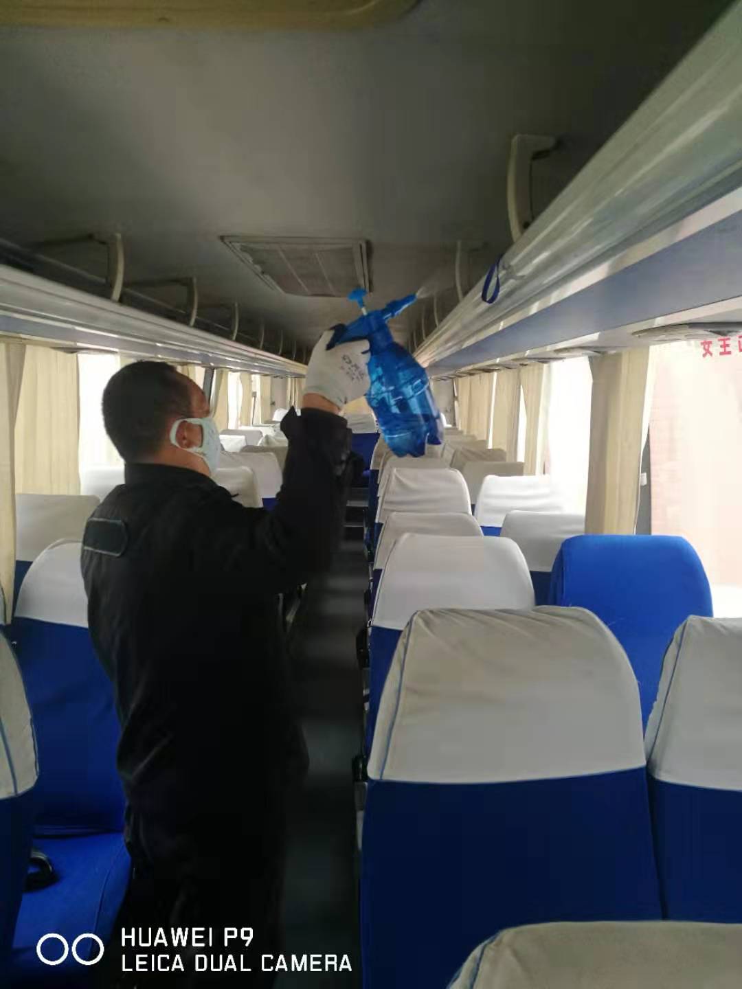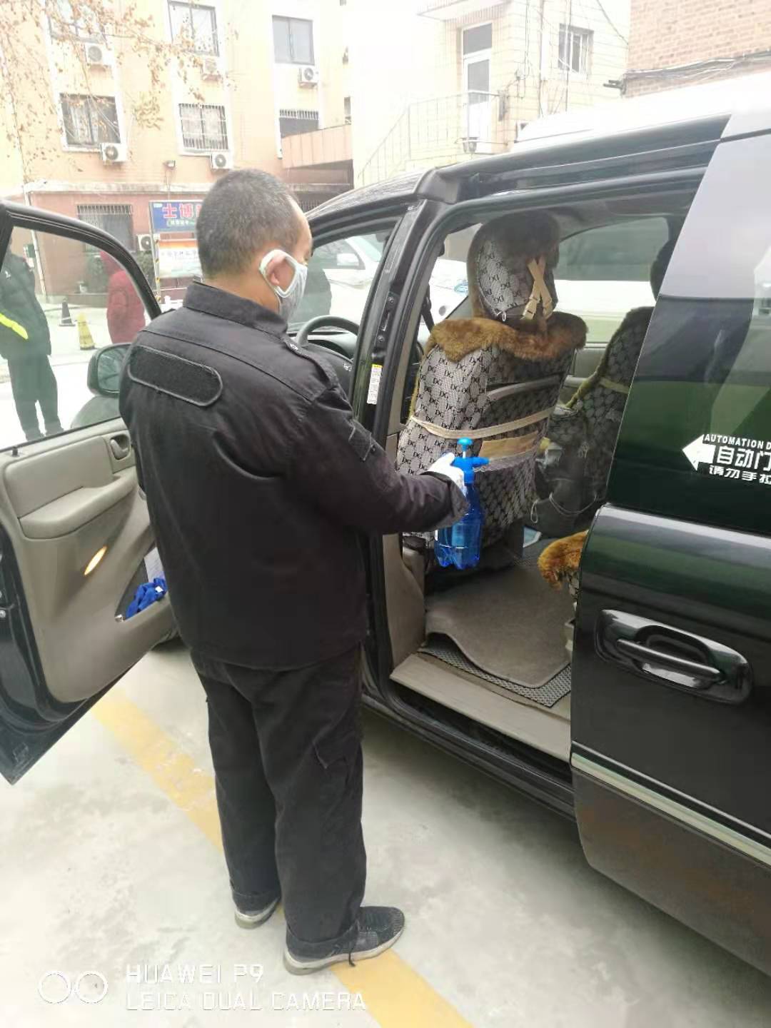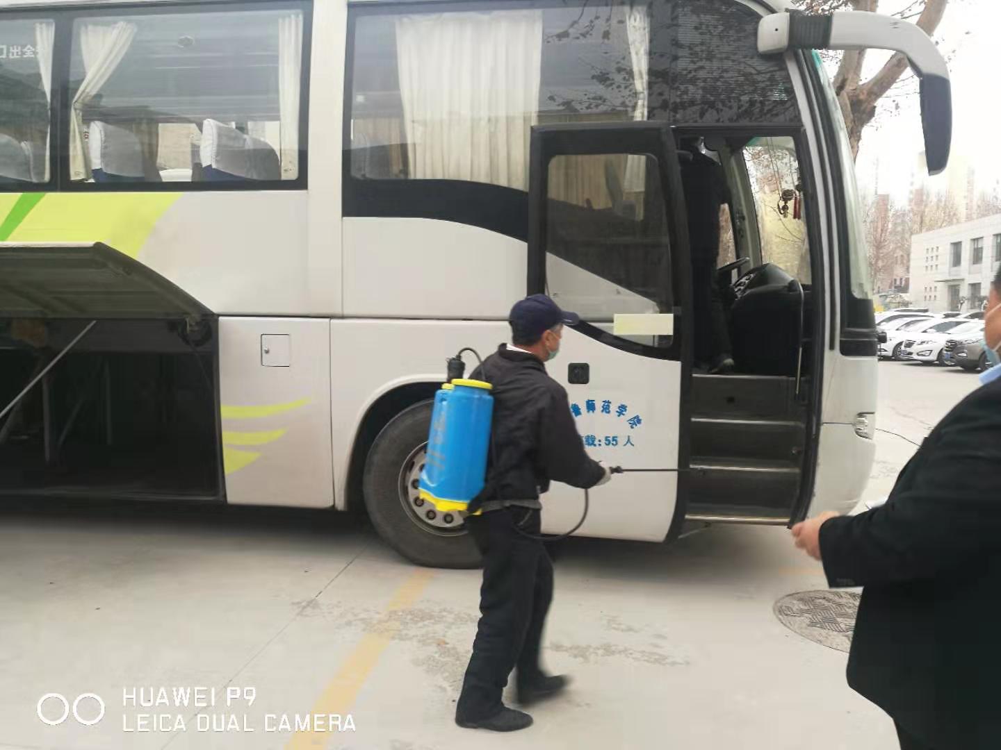 培训后,相关人员按照要求佩戴口罩、手套对校车和公务车辆内部进行了酒精擦拭消毒,并对车外部位用84消毒液进行了喷洒消毒。
