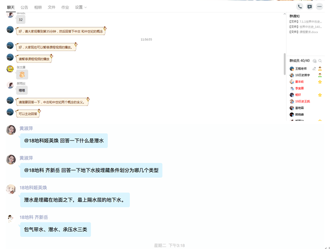 为了上好网络课程,历史与社会发展学院教师全部投入到网络授课前的准备工作之中,由于老师们都是第一次上网络课程,没有任何经验,为此,他们纷纷加入了三个平台的微信、QQ学习群,积极学习各大平台的操作技术,建设翻转课堂、慕课等,同时查阅各种教学电子文本材料,准备教学资源,给学生建立课程微信群和QQ群,提前给学生发送电子版教材和参考书,带着问题去阅读,叮嘱学生提前预习。所有开课教师都提前为所承担课程做了教学预案,提前熟悉QQ群课堂、直播课堂以及腾讯会议等网络教学平台可能出现的问题,避免网络平台“堵车”问题,确保网络教学顺畅。开课一周前,教师线上指导学生下载教学软件,试用平台上的功能,保证学习效果。