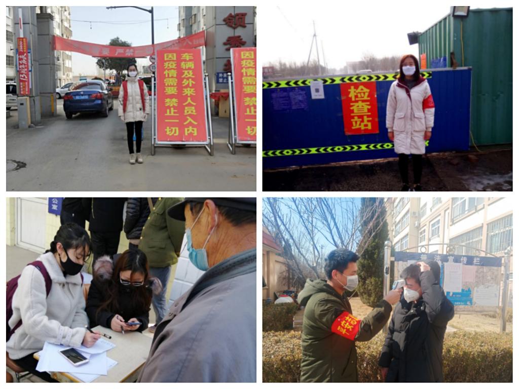 青年学子的抗疫事迹不胜枚举,自春节以来,张杰、张馨月、李丽、颜平之、董方凯同学参与社区的志愿者值班,进行人口身份信息登记。学生周薏岚、黄晓彤、于凤、何素、王守洋、赵士浩、袁睦科等对社区人员进行体温检测,防止病毒感染。充分展示了当代大学生的责任与担当。