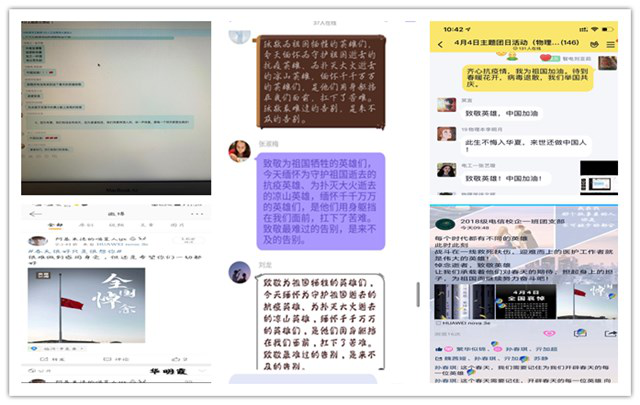 为表达对在抗击新冠肺炎疫情斗争中牺牲烈士和逝世同胞的深切哀悼,并以此为契机加强对学生爱国主义、生命观念、社会责任等思政教育,4月3日下午,物理与电子工程学院面向全体学生发出积极配合全国性悼念活动的倡议,学院团总支于4月4日上午组织全体学生举行线上默哀,在此基础上各班级团支部举办“默哀下的思索”主题团日活动。