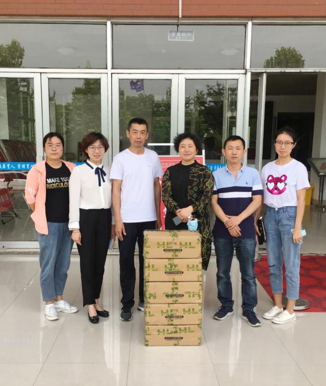 5月29日上午,2018级应用化学本科班学生国颖的父亲国贤昌向学院捐赠免洗75%酒精消毒液,爱心助力学院疫情防控与学生返校复学,院长曹晓荣、副院长刘新征、团总支辅导员老师与之见面。