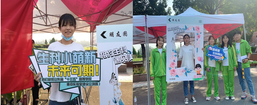 除此之外,接待点也放置了精心准备的 “打卡”项目,每位小萌新都在“朋友圈”里留下了或灿烂或腼腆的笑容。新生报到处还有图文并茂的宣传展板,专业特色详细介绍、优秀教师风采展示等别出心裁的宣传形式,带领新生初步了解学院的整体概况和学术氛围。截止9月21日20:30,生命科学学院2020级迎新工作圆满完成,308名同学办理完入学手续并入住宿舍,报到率高达97.78%。