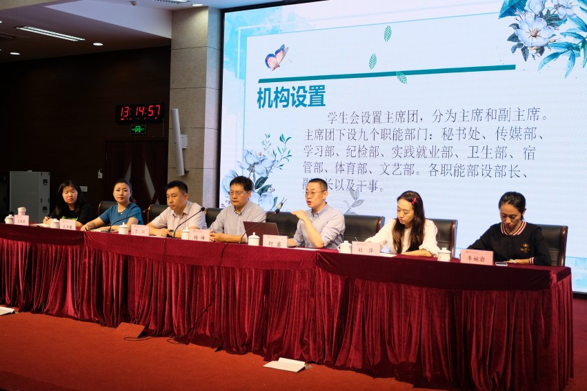 何睿在会上向全体新生介绍了学校学生管理的各项要求,详细介绍了学院学生会、社团组织等的基本情况,并对学生军训等近期开展的工作做了动员部署。
