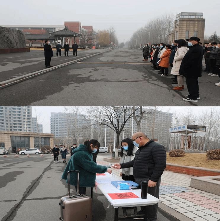学院学生会成员自愿成立志愿者小组,帮助返校同学核验身份、测量体温、完成注册报道。在学校、学院领导的统一指导下,疫情防控预案和学生返校复学方案不断完善,相关部门强化安全管理,做好物资准备,合力把好校园疫情防控的第一关。