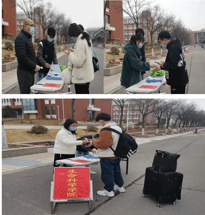 2月28日,生命科学学院严格按照学校相关要求,分时分批、错时错峰组织学生顺利返校。科学的防疫措施,便捷的返校流程,报到现场,返校学生在辅导员张宏熙、房继德、祖群、徐茜茜老师的引导下,积极配合体温检测、身份核验等工作。