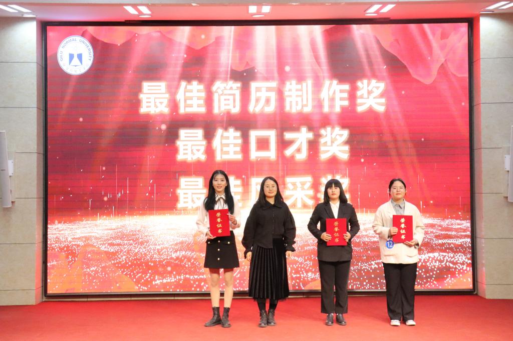 最终,本次大赛共评出一等奖4名、二等奖8名、三等奖14 名,最佳简历制作奖、最佳口才奖、最佳风采奖各1名。