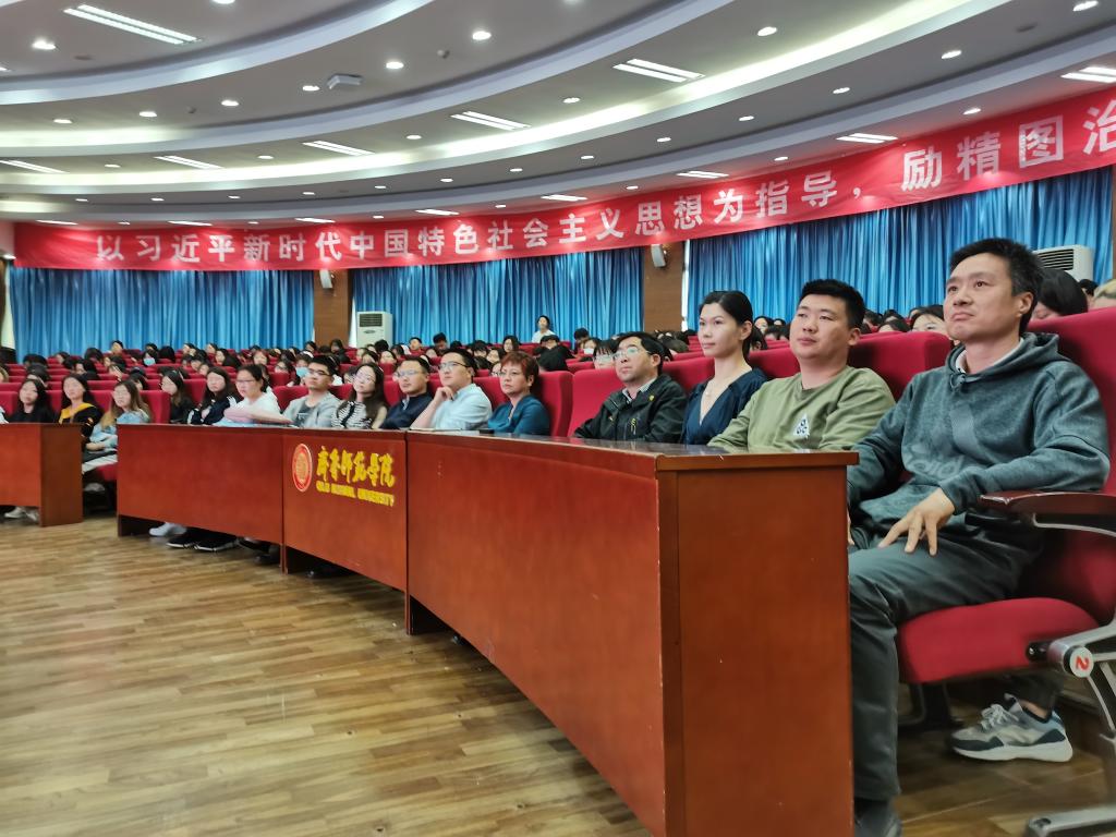 5月11日下午,外国语学院于学术报告厅召开2021届考研总结分享会暨学风建设再动员会,外国语学院院长宋秀葵、党总支副书记郁志营、副院长李百温、班主任、新进教师、团总支教师以及2021届拟录取为研究生的学生、2018与2019级本科生、2020级专升本学生参加了本次会议,此次会议由团总支书记牛荦主持。