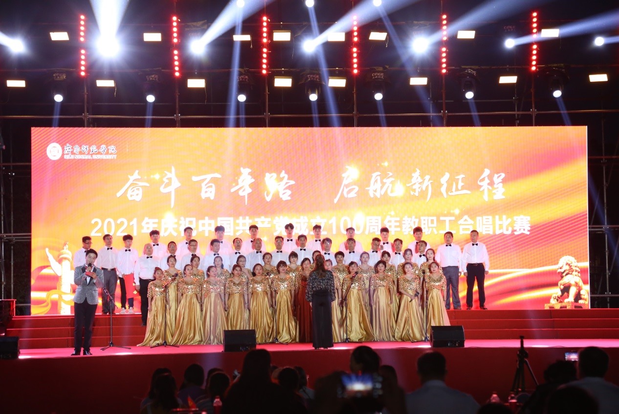 “重温党的光辉历史,讴歌党的丰功伟绩”,为庆祝中国共产党百年华诞,必赢官网于6月24日在运动场举行“奋斗百年路,启航新征程”教职工合唱比赛。经过近两个月的精心准备和排练,物理与电子工程学院教职工代表队荣获本次比赛二等奖。